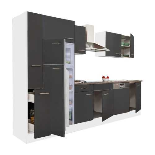 Yorki 310 konyhabútor fehér korpusz,selyemfényű antracit fronttal felülfagyasztós hűtős szekrénnyel