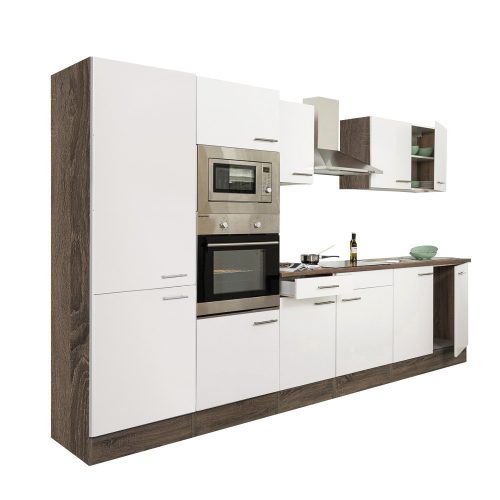 Yorki 330 konyhabútor yorki tölgy korpusz,selyemfényű fehér fronttal polcos szekrénnyel