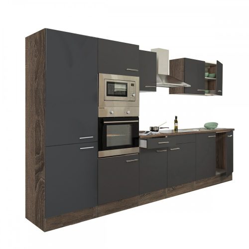 Yorki 330 konyhabútor yorki tölgy korpusz,selyemfényű antracit fronttal polcos szekrénnyel