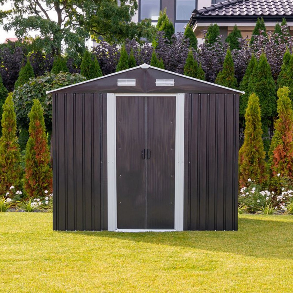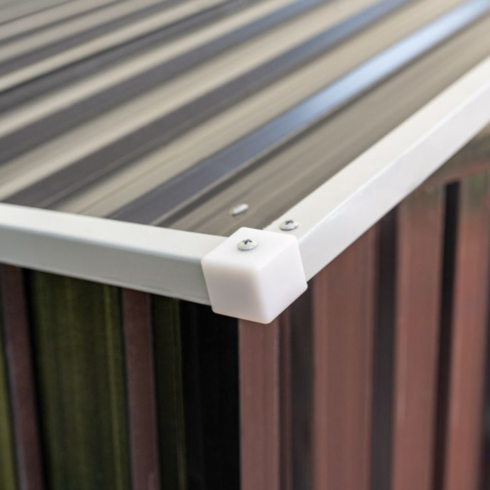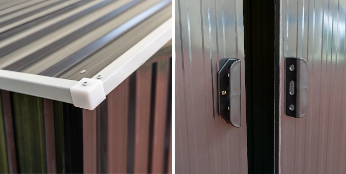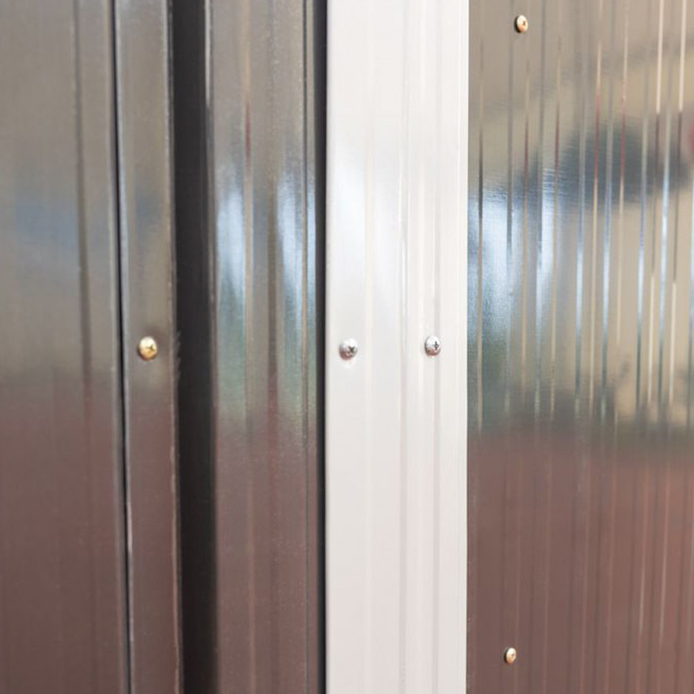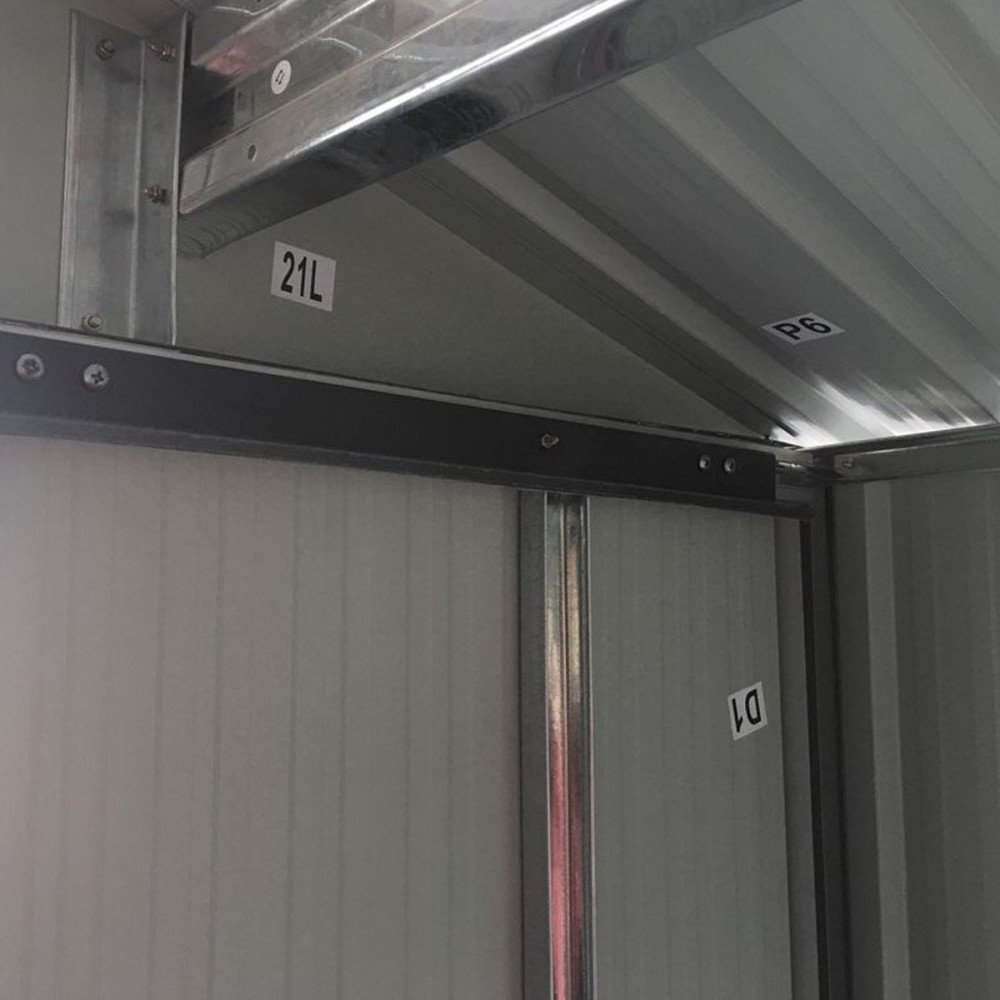 A szerszámtároló szerkezete horganyzott acélból készül,ami ellenállóvá teszi a korrózióval szemben. Horganyzott acélfalak biztosítják a kerti ház szilárdságát .