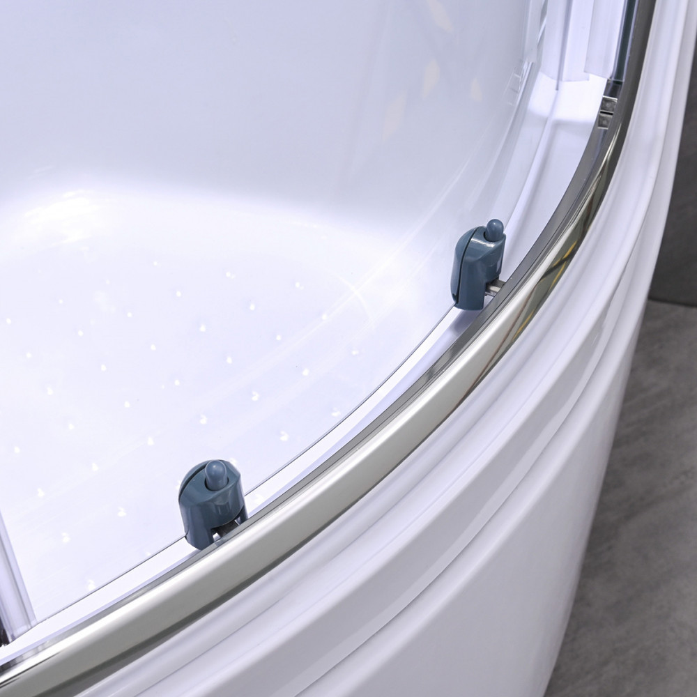 A krómozott alumínium profilok stabil szerkezetet adnak, a fém fogantyú pedig kényelmes fogást biztosít minden használat során. A 225 cm-es teljes magasság tágas belső teret eredményez a megszokottnál magasabb kabinok kedvelőinek.