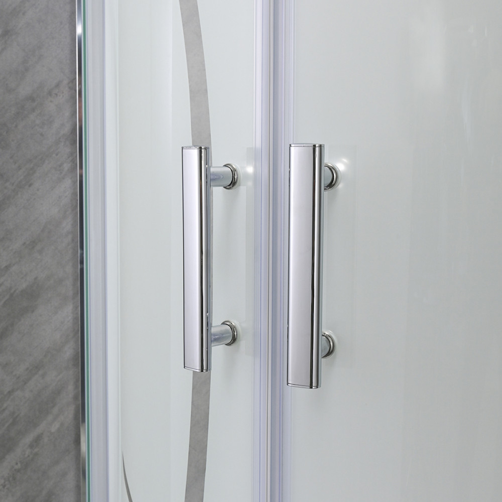 A Leziter Spirit Bamboo zuhanykabin íves formája végett illeszkedik a sarokba, így helytakarékos elrendezést kínál, miközben tágas és kényelmes zuhanyzási teret biztosít. A krómozott alumínium profilok és a 16 cm-es fém fogantyúk stabil, masszív szerkezetet adnak, amely hosszú távon is megőrzi formáját és fényét. A mintás biztonsági üveg természetes hatású, világos felületet alkot, amely megőrzi a tér nyitottságát, ugyanakkor kellemesen diszkrét megjelenést kölcsönöz a zuhanyzónak.