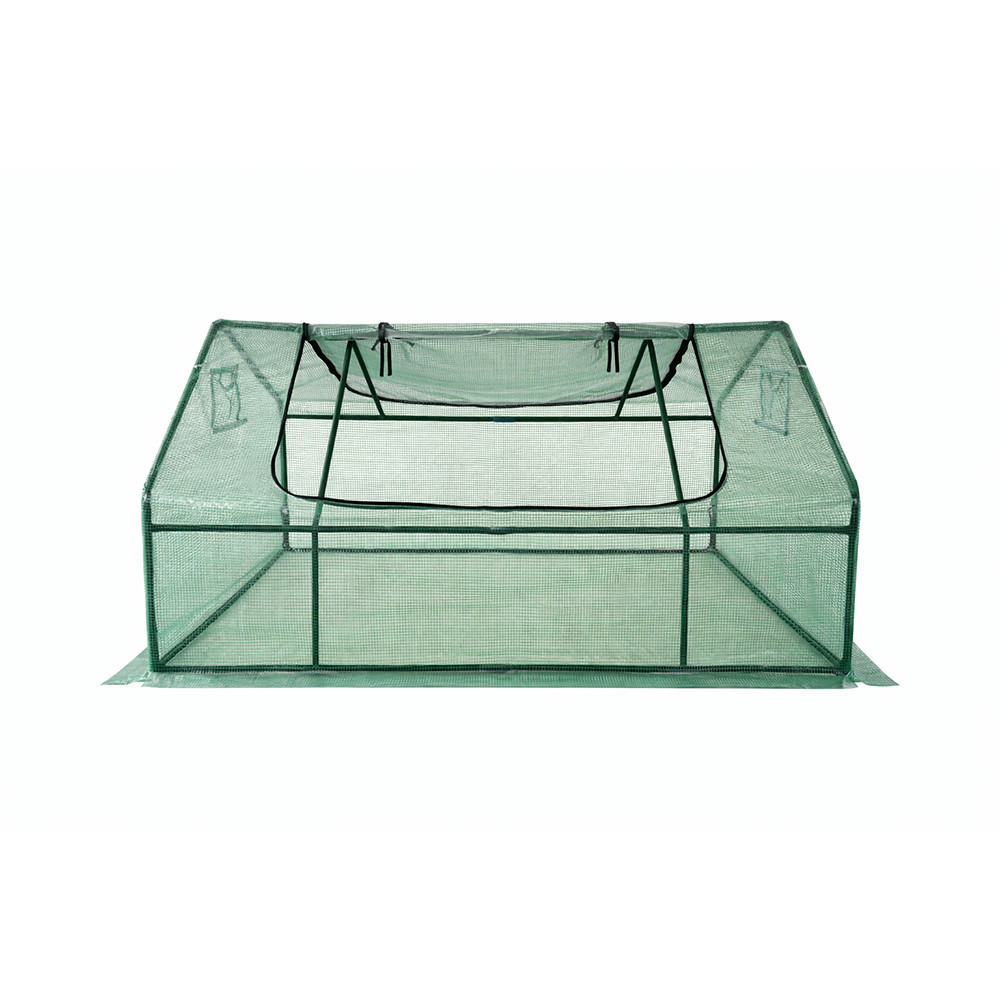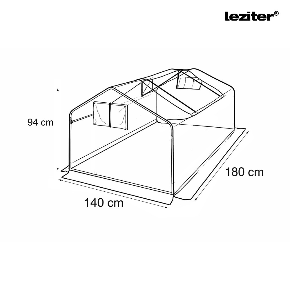 A 16×0,5 mm-es csövekből készült váz masszív szerkezetet alkot, amelyre a fólia feszesen rögzíthető. A feltekerhető nyílás és a cipzáros bejárat könnyű hozzáférést kínál a növényekhez, és lehetőséget ad a szellőzés szabályozására az adott növény igényei szerint.