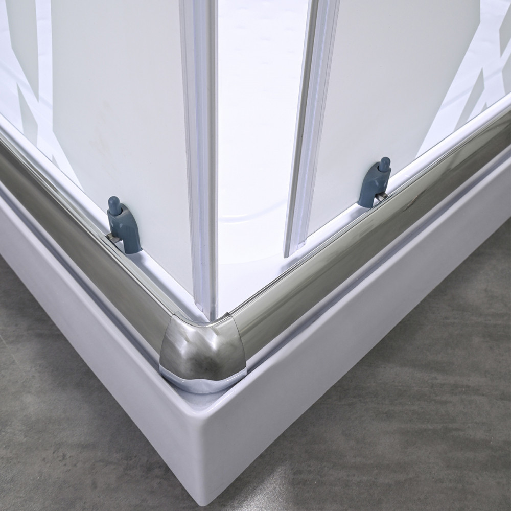 A Leziter Spirit Bamboo zuhanykabin szögletes formája végett illeszkedik a sarokba, így helytakarékos elrendezést kínál, miközben tágas és kényelmes zuhanyzási teret biztosít. A krómozott alumínium profilok és a 16 cm-es fém fogantyúk stabil, masszív szerkezetet adnak, amely hosszú távon is megőrzi formáját és fényét. A mintás biztonsági üveg természetes hatású, világos felületet alkot, amely megőrzi a tér nyitottságát, ugyanakkor kellemesen diszkrét megjelenést kölcsönöz a zuhanyzónak.