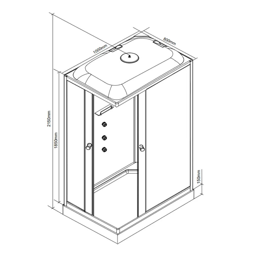 • Magasság: 185 cm (kabin), 215 cm zuhanytálcával együtt