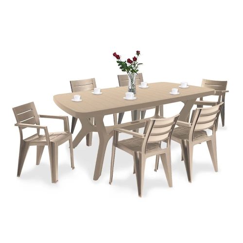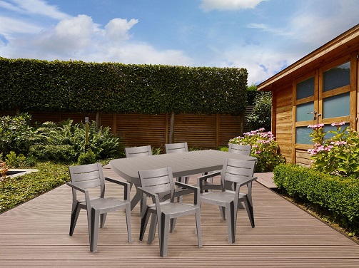A Juliemore egy modern kerti bútor szett, amely a megfelelően profilozott háttámlájának köszönhetően rendkívül kényelmes. A bútor könnyű, szolid és ellenáll az időjárás viszontagságainak és az UV sugárzásnak. A székek egymásra helyezhetők, ami segít helyet megtakarítani és könnyebbé teszi a tárolását.