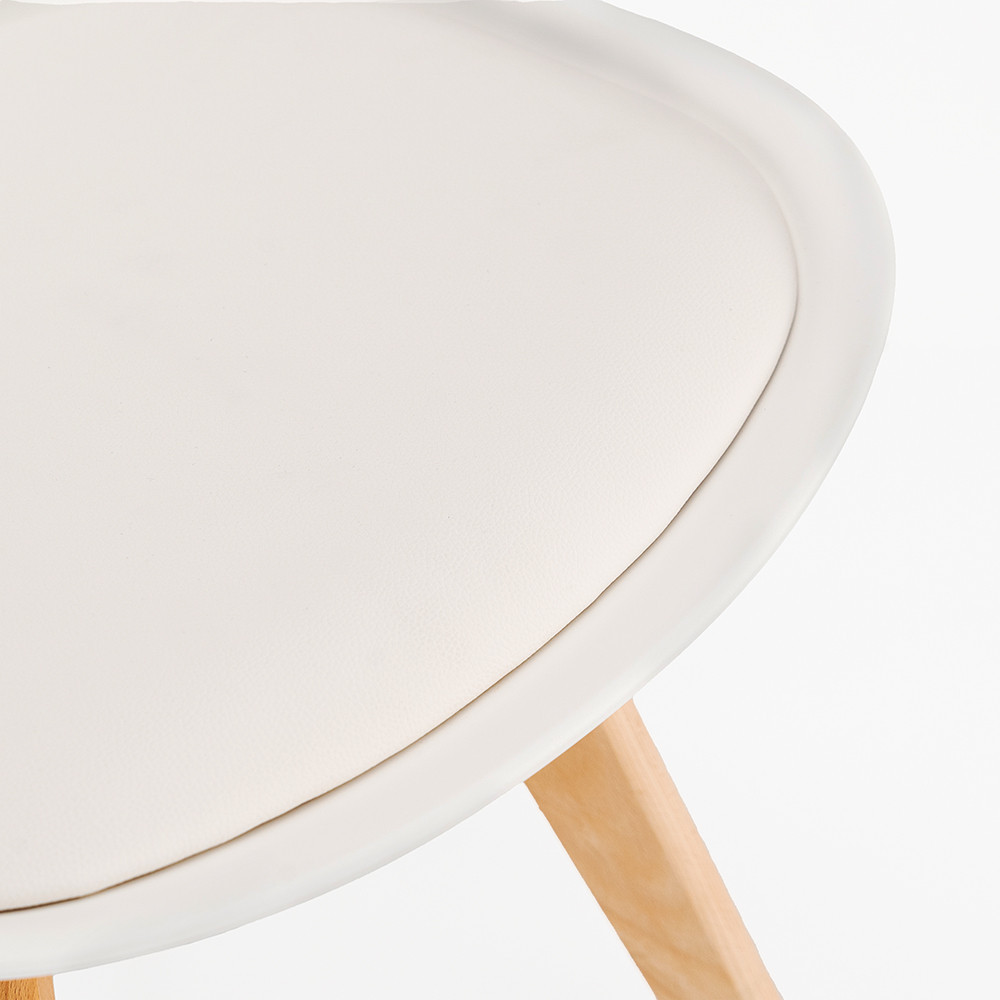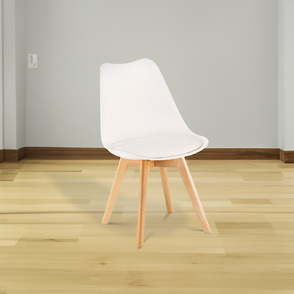 A Silla étkezőszék kifinomult fehér színe és kialakítása egyesülnek a modern dizájn jegyeivel. A szék polipropilén ülőfelülete és a fehér szintetikus textil (PVC) párnázat ötvözete egyedülálló eleganciát kölcsönöz, míg a Bükkfa színű tartós faanyagból készült lábak stabilitást és hosszú élettartamot ígérnek.
