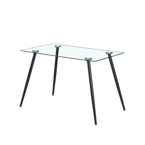 Ez a modern étkezőasztal 8 mm vastag edzett üveglappal készült, amely ellenáll a mindennapi használatnak és könnyen tisztítható. A fém lábak stabilitást biztosítanak, míg a műanyag talpak védik a padlót a karcolásoktól. Letisztult, szögletes formájának köszönhetően tökéletes választás kisebb és nagyobb terekbe egyaránt.