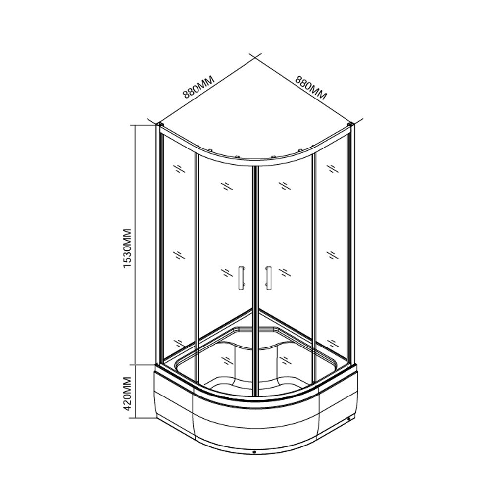 Leziter SDEEP90 Spirit Deep 90x90 cm-es íves zuhanykabin, mélytálcával méretrajz
