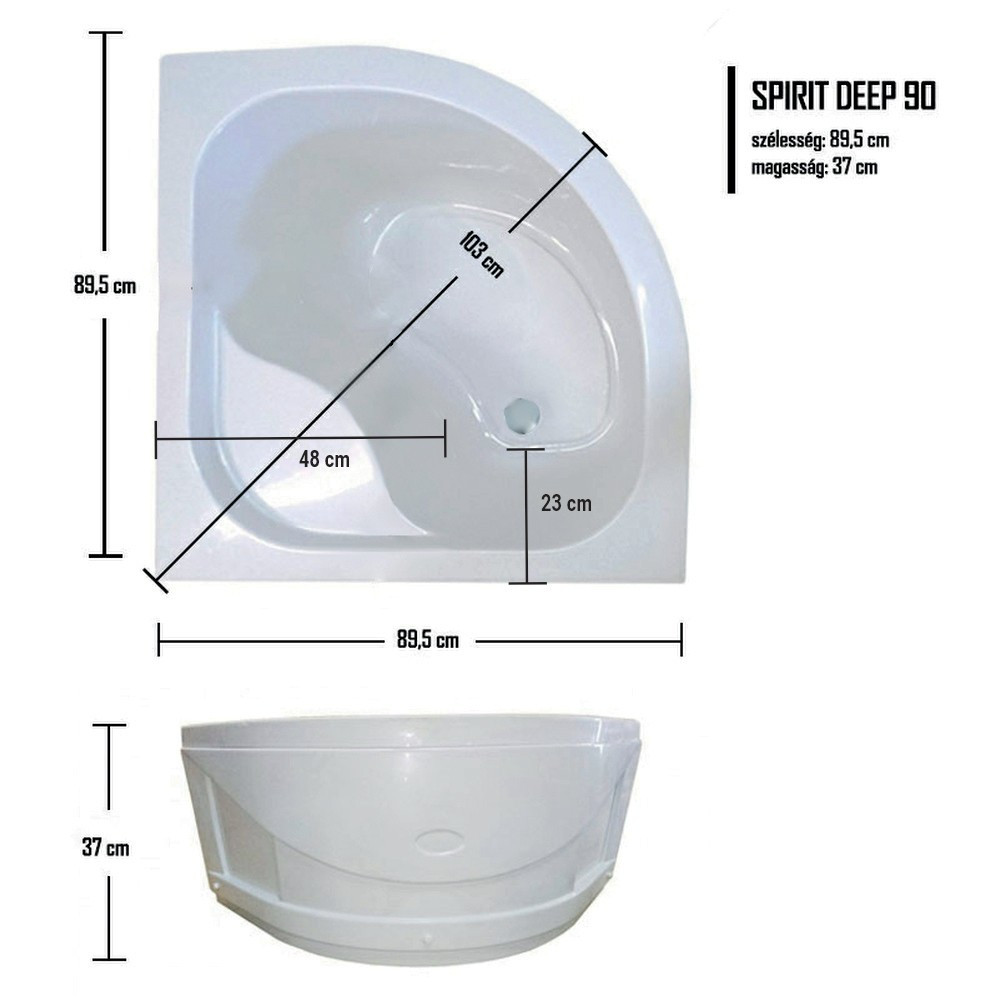 Spirit Deep 90x90 cm íves zuhanykabin zuhanytálcával