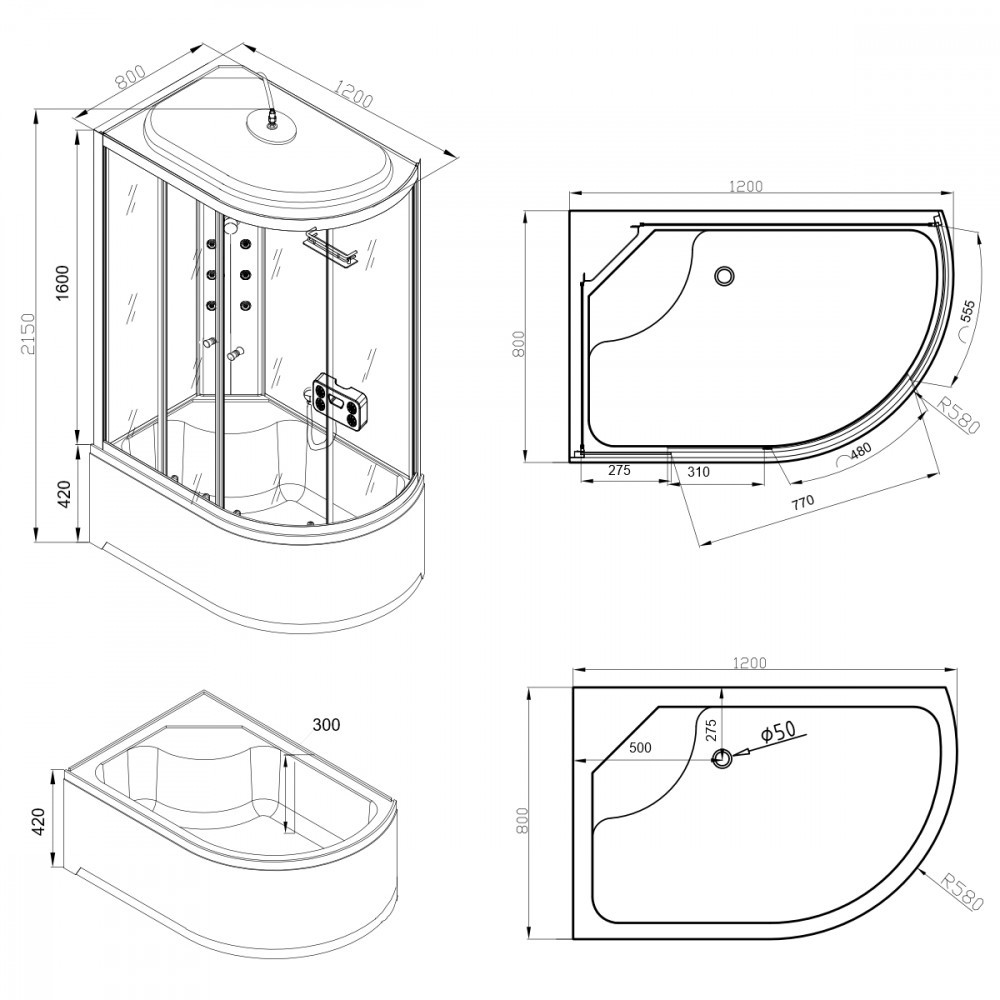 Lia 80x120 cm hidromasszázs zuhanykabin balos
