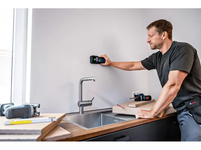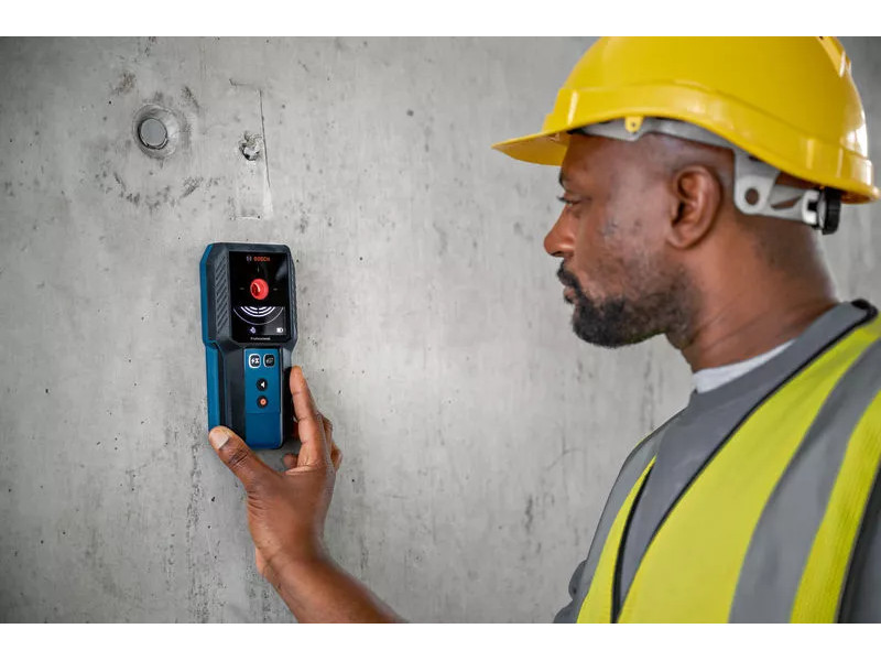 Biztosítja, hogy a falba fúrási munkák alkalmával nem ütközik akadályba. A GMS 120-27 professzionális falszkenner lehetővé teszi a tárgyak egyszerű és intuitív észlelését. Az észlelési eredmények a kijelzőn megjelenő jelzésen és a színkódolt jelölőnyíláson keresztül jelennek meg. A könnyen használható érzékelő egyszerű módválasztást tesz lehetővé, és a jelölőlyukon keresztül pontosan megjelölheti, hol észlelt tárgyakat. A robusztus GMS 120-27 nehéz munkaterületekre lett kifejlesztve, IP54 por- és fröccsenő vízvédelemmel, valamint ütéselnyelő gumi burkolattal.