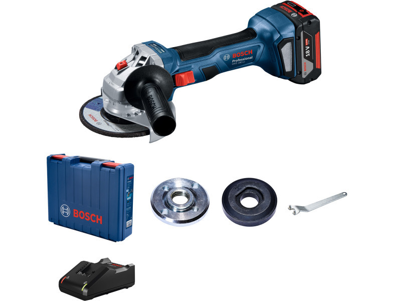 BOSCH Akkus sarokcsiszoló 125 mm GWS 180-LI kofferben (1 X 4,0 Ah akku + gyorstöltő)