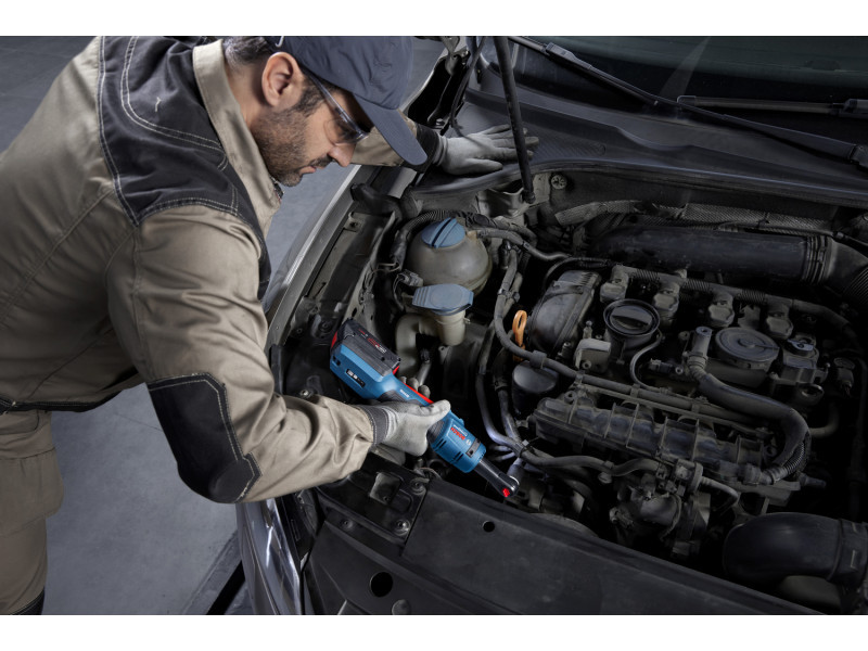 A Bosch GRC 18V-60 akkus racsnis nyomatékkulcs csavarok meghúzására és eltávolítására szolgál. M12 méretig használható csavarbehajtásra fémek egymáshoz rögzítéséhez. Ideális lakatosmunkát és autószerelést végzők számára, különösen szűk helyen történő munkavégzéskor.