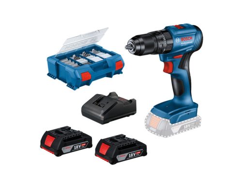 Szállítva: 2 x GBA 18V 2.0Ah akkumulátor, 82 részes tartozékkészlet, GAL 18V-20 Professional töltőkészülék
