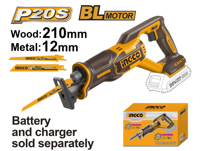INGCO Akkus szablyafűrész szénkefe nélküli 20 V (akku és töltő nélkül)
