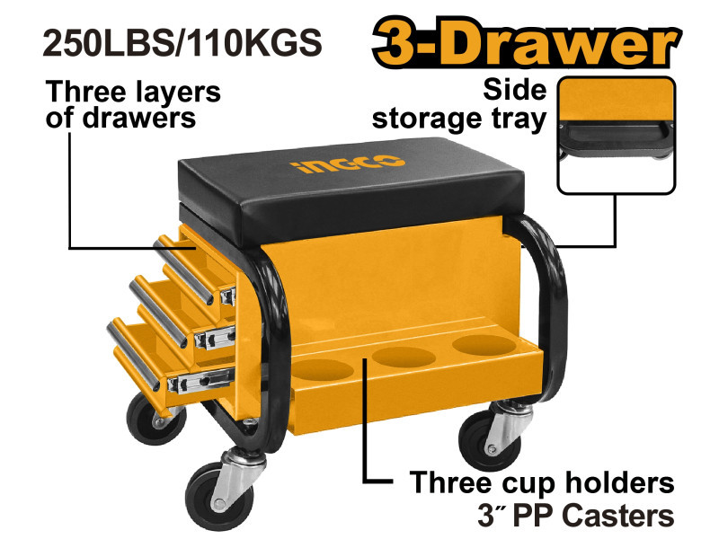 INGCO Fiókos műhelyzsámoly 110 kg 3 fiók