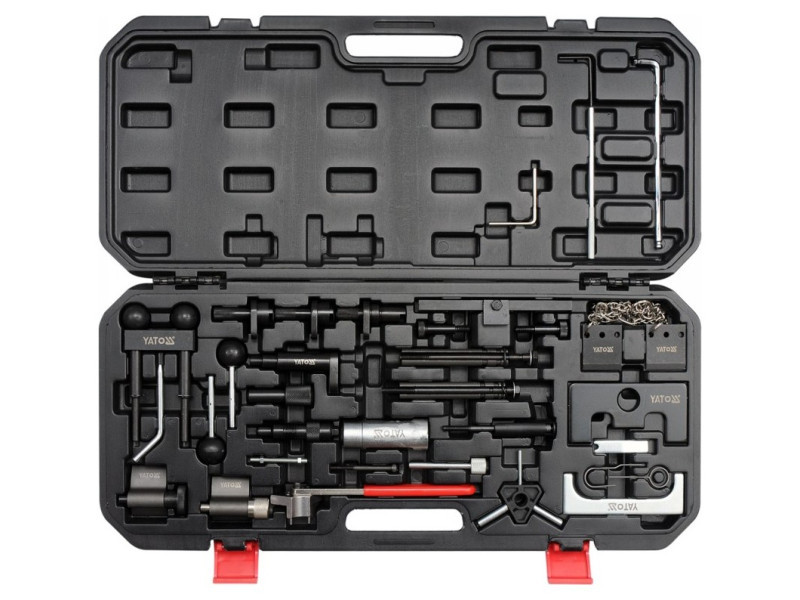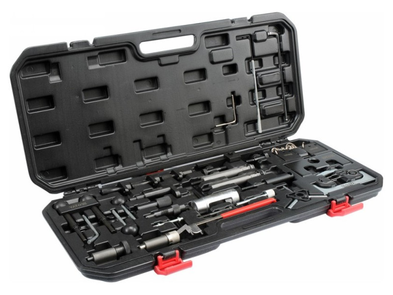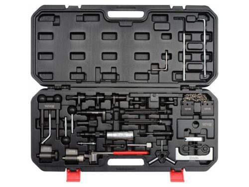 Az YT-06015 készlet egy 34 elemből álló, elengedhetetlen szerszám minden szerelő számára, amely garantálja a VW, Audi, Seat és Škoda autók vezérlésének pontos és biztonságos szervizelését.