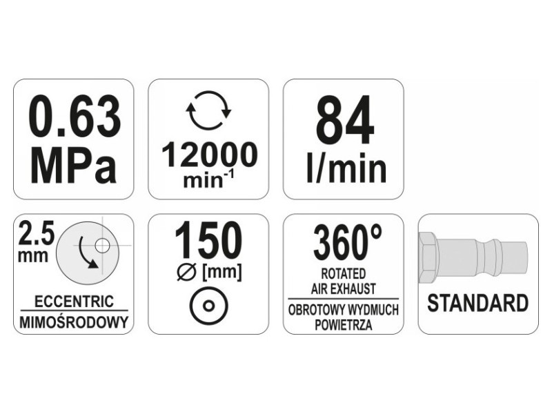 Professzionális excentrikus csiszológép, amelyet egy nyomás alatti légáram működtet. A közvetlenül a tárcsákra felvitt csiszolóanyagoknak köszönhetően lehetővé teszi a különböző anyagok csiszolását és polírozását. Autószerelésben és az iparban használják.