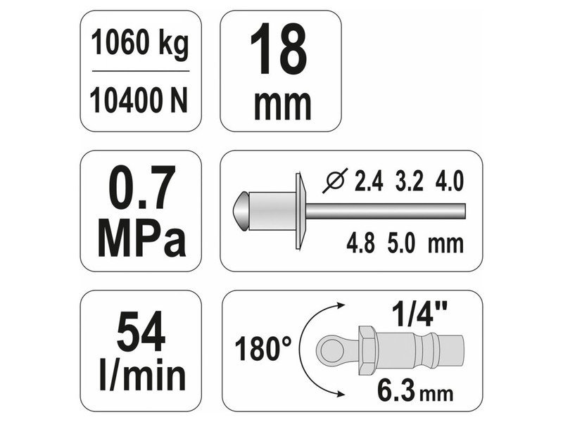 YATO Pneumatikus popszegecshúzó 1/4", 0,7 MPa, 54 l/min