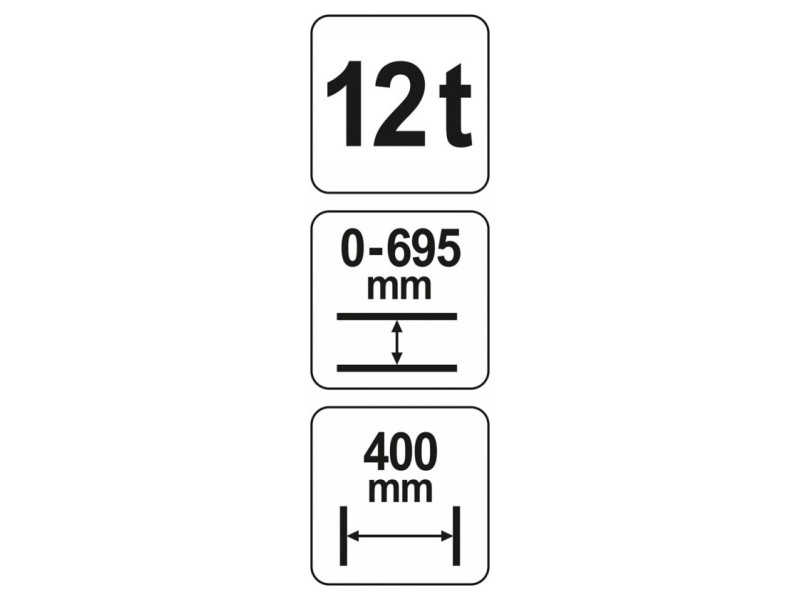 Professzionális hidraulikus prés 12 tonnás nyomással. Masszív és robusztus kialakításának köszönhetően bármilyen autóipari vagy gyártóműhelyben használható. Rendelkezik az összes szükséges tanúsítvánnyal, amely lehetővé teszi, hogy professzionális létesítményekben dolgozzon.