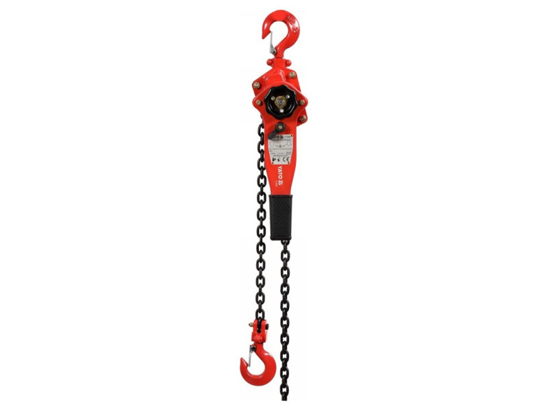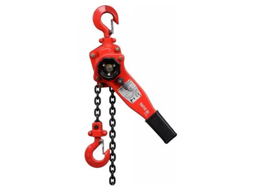A YATO LÁNCSZERELÉSŰ LÁNCEMELŐK ÚJ VONALA A Yato láncos emelőket intenzív ipari körülmények közötti használatra tervezték gyártóvállalatoknál, szállítmányozási vállalatoknál, hajógyárakban, bányákban és raktárakban. Lehetővé teszik a nehéz terhek, építőelemek emelését, gépek elhelyezését, valamint a kábelek előfeszítését és a nehéz terhek hatékony rögzítését. Az emelők speciális kampókkal vannak felszerelve a nagyobb biztonság érdekében. Az emelőmagasság 1500 mm . Az új emelősorozatot kompakt, sérülésálló, teljesen acélból készült, korrózióvédett kivitel jellemzi. A precíz karmechanizmus, minimalizálja a teheremeléshez szükséges erőt. A teljes termékcsalád 750 kg - 9 tonna emelőkapacitású karos emelőket tartalmaz ... Részletek a berendezés műszaki dokumentációjában találhatók. Az emelők a garanciaidő alatt és után szervizszolgáltatással vannak ellátva. 2000 kg-nál nagyobb teherbírású kézi emelők a Műszaki Ellenőrzési Hivatal (UDT) bejelentési és átvételi ellenőrzéséhez kötöttek. Nehéz emeléshez, feszítéshez, pozicionáláshoz. Használat előtt kérjük, olvassa el a használati utasítást.
