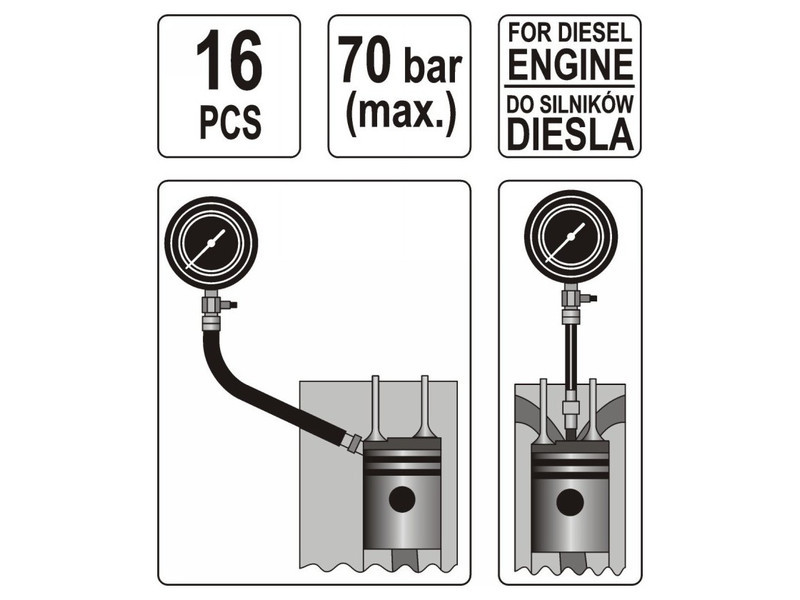 YATO Kompressziómérő Diesel motorhoz 70 Bar