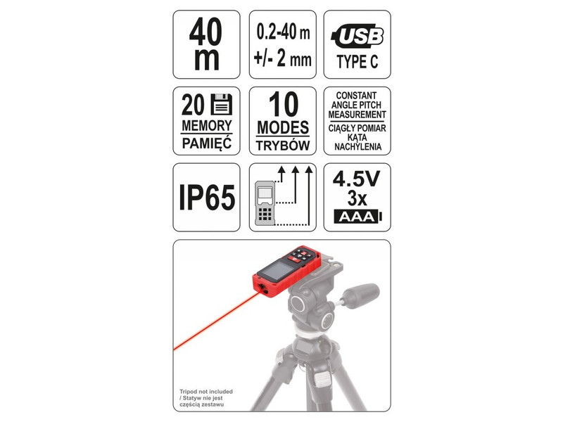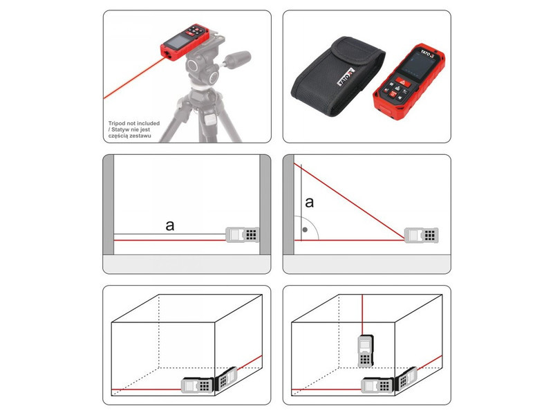 Lézeres távolságmérő a gyors és pontos távolságméréshez 0,2 és 40 m között. Beltéri és kültéri távolság- és térfogatmérésekhez
