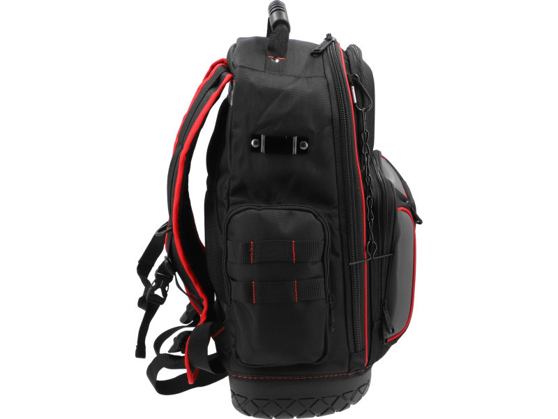 Praktikus és nagyon strapabíró hátizsák magas minőségű megerősített nylonból készült. Kiválóan alkalmas a munkához szükséges eszközök szállítására. Számos extra zseb lehetővé teszi a szerszámok és kiegészítők szétválogatását és rendben tartását, valamint értékes felszerelés, mint például pénztárca, telefon, dokumentumok, biztonságos tárolását zárható rekeszben.