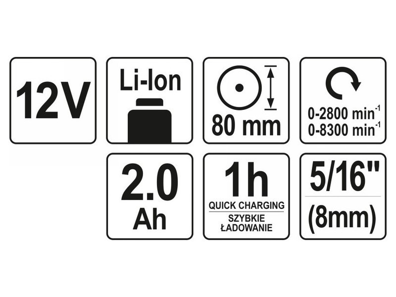 YATO Akkus polírozó 80 mm 12 V Li-Ion (1 x 2,0 Ah akku + töltő)