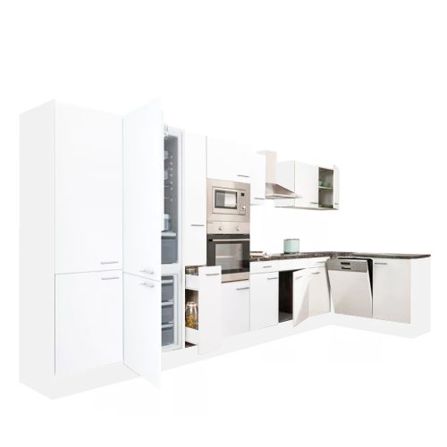 Yorki 430 sarok konyhabútor fehér korpusz,selyemfényű fehér fronttal alulagyasztós hűtős szekrénnyel
