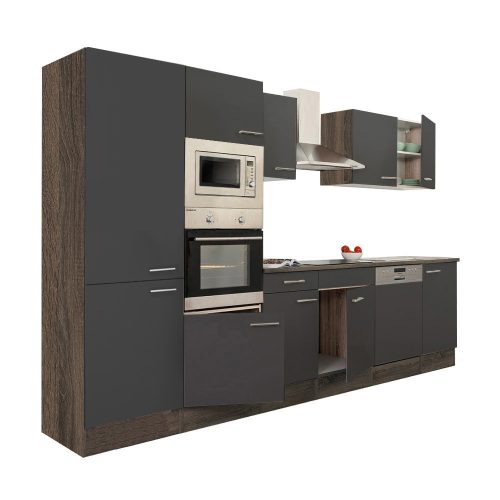 Yorki 340 konyhabútor yorki tölgy korpusz,selyemfényű antracit fronttal polcos szekrénnyel