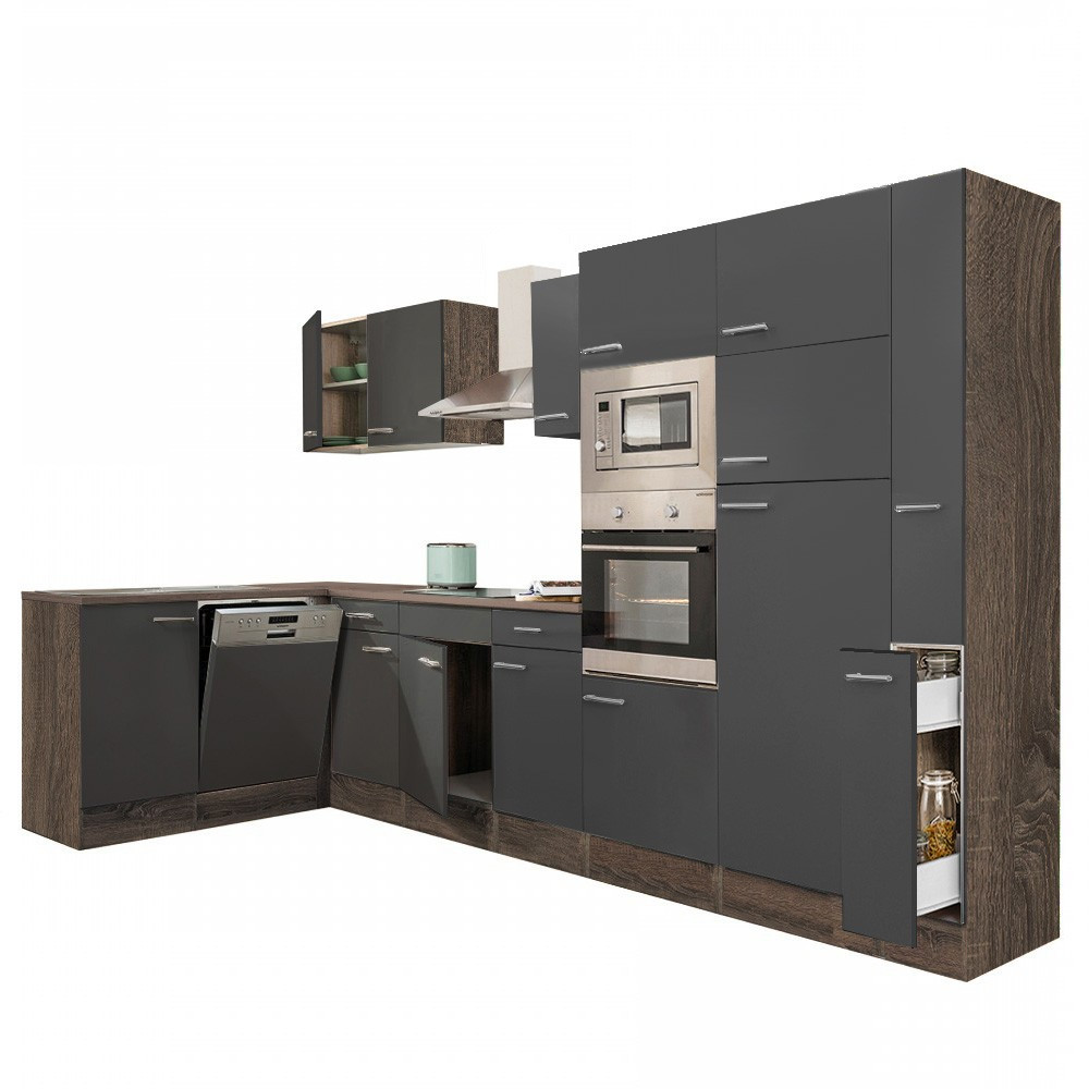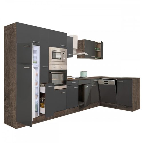Yorki 370 sarok konyhablokk tölgy korpusz, selyemfényű antracit fronttal. A tökéletes konyha megteremtője!