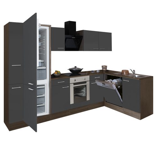 Yorki 310 sarok konyhabútor yorki tölgy korpusz,selyemfényű antracit front alsó sütős elemmel alulagyasztós hűtős szekrénnyel