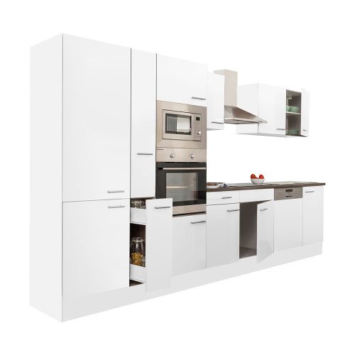 Yorki 370 konyhabútor fehér korpusz,selyemfényű fehér fronttal polcos szekrénnyel