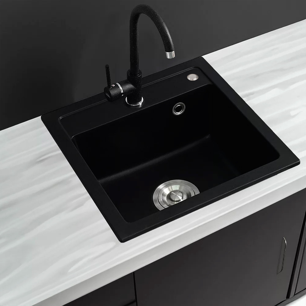 A Nia szögletes fekete gránit mosogató egyaránt kielégíti az esztétikai és a funkcionalitási igényeket. A süllyesztett beszerelési módja modern megjelenést kölcsönöz konyhájának, míg a kompakt méretei és a prémium minőségű anyagok hosszú élettartamot biztosítanak.