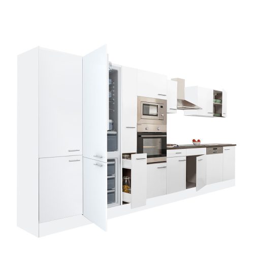 Yorki 430 konyhabútor fehér korpusz,selyemfényű fehér fronttal alulfagyasztós hűtős szekrénnyel