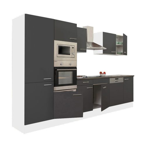 Yorki 340 konyhabútor fehér korpusz,selyemfényű antracit fronttal polcos szekrénnyel
