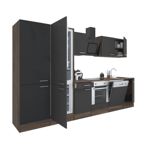 Yorki 330 konyhabútor yorki tölgy korpusz,selyemfényű antracit front alsó sütős elemmel polcos szekrénnyel és alulfagyasztós hűtős szekrénnyel