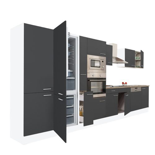 Yorki 430 konyhabútor fehér korpusz,selyemfényű antracit fronttal alulfagyasztós hűtős szekrénnyel