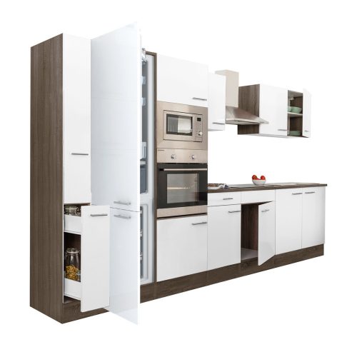 Yorki 360 konyhabútor yorki tölgy korpusz,selyemfényű fehér fronttal alulfagyasztós hűtős szekrénnyel