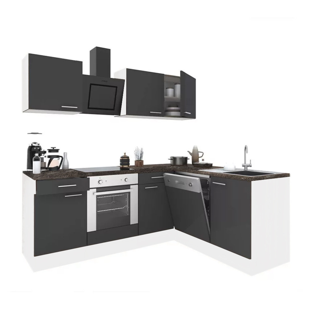 Yorki 220 sarok konyhablokk fehér korpusz, selyemfényű antracit fronttal. A tökéletes konyha megteremtője!