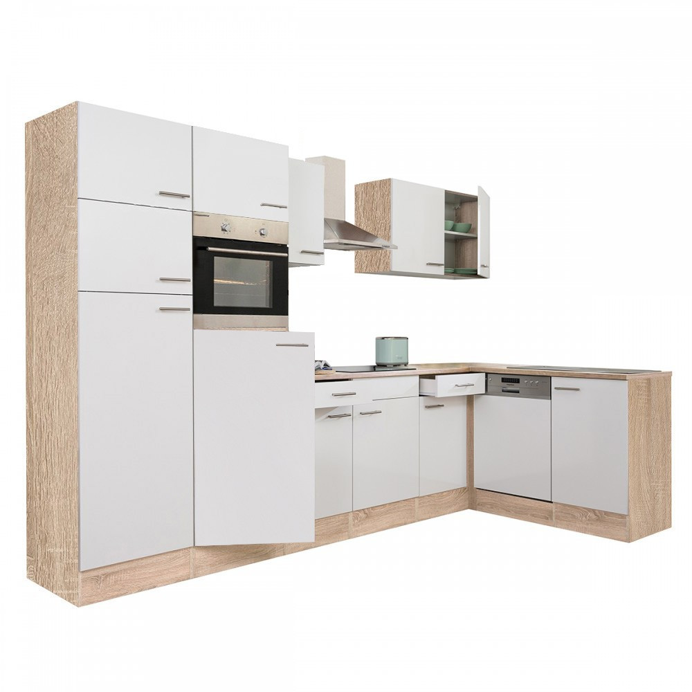 Yorki 340 sarok konyhablokk sonoma tölgy korpusz,selyemfényű fehér fronttal. A tökéletes konyha megteremtője!