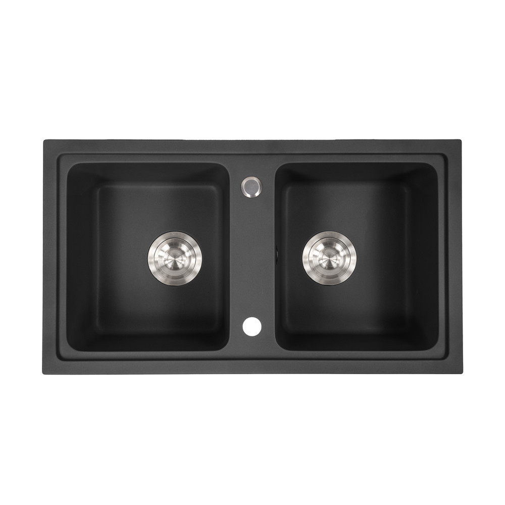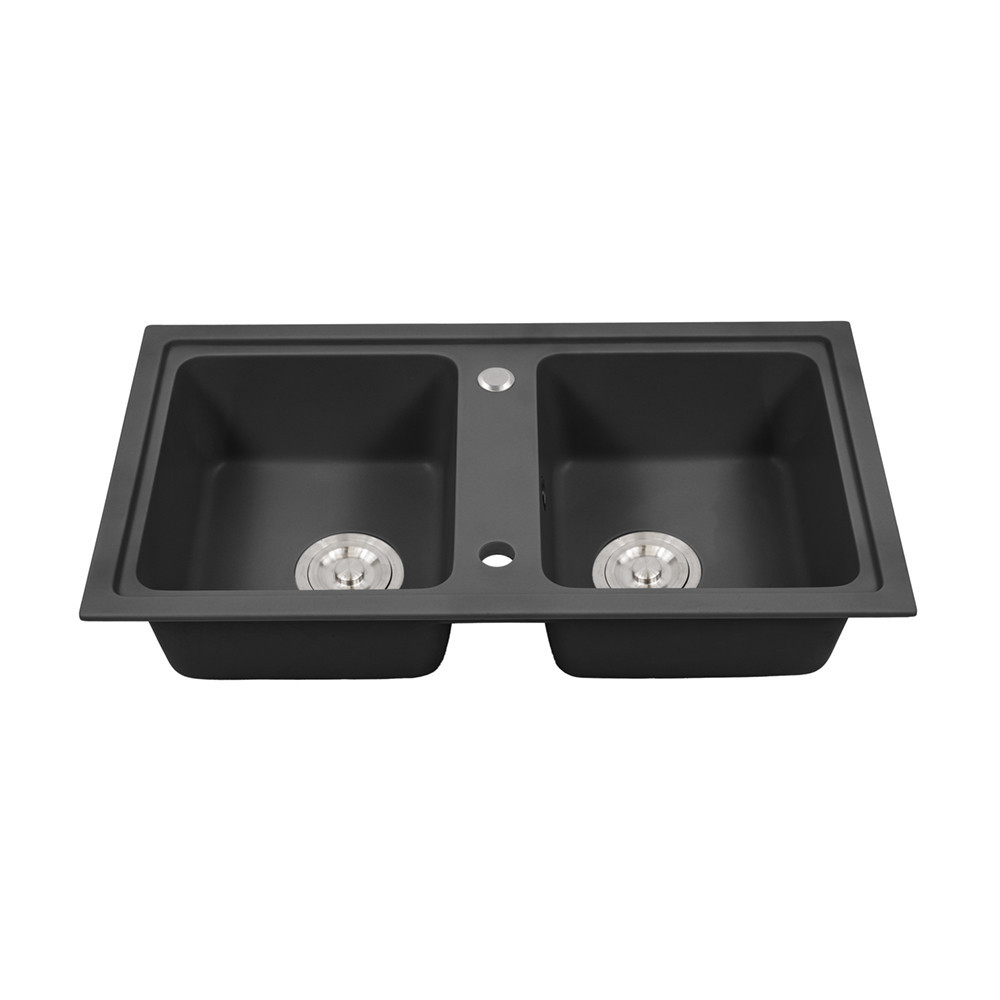 Tia szögletes két medencés gránit mosogató szifonnal fekete