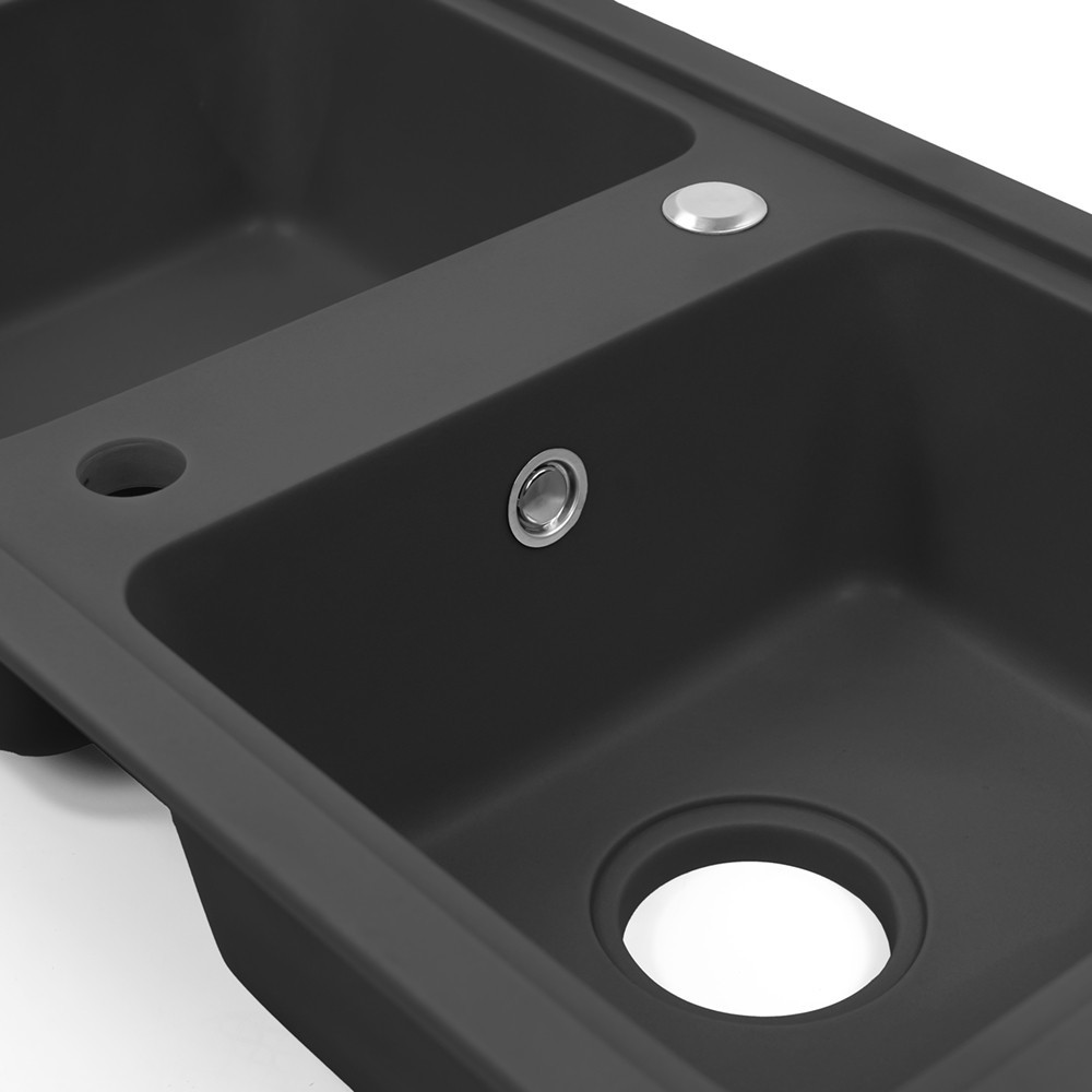 Tia Szögletes Fekete Gránit Mosogató - Két Medencével a Kényelemért és Eleganciáért