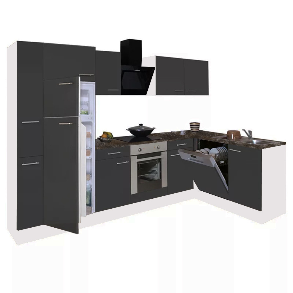 Yorki 310sarok konyhabútor fehér korpusz,selyemfényű antracit front alsó sütős elemmel felülfagyasztós hűtős szekrénnyel