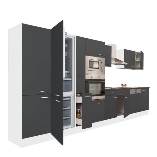 Yorki 420 konyhabútor fehér korpusz,selyemfényű antracit fronttal alulfagyasztós hűtős szekrénnyel