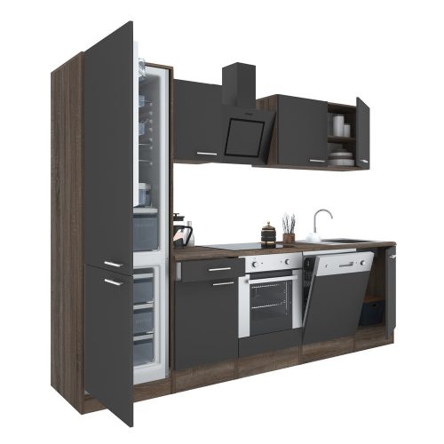 Yorki 280 konyhabútor yorki tölgy korpusz,selyemfényű antracit front alsó sütős elemmel alulfagyasztós hűtős szekrénnyel