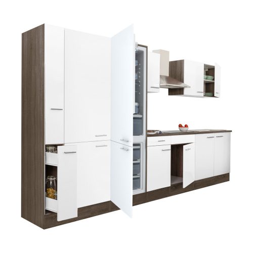 Yorki 360 konyhabútor yorki tölgy korpusz,selyemfényű fehér fronttal polcos szekrénnyel és alulfagyasztós hűtős szekrénnyel