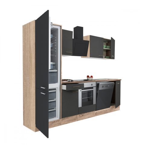Yorki 280 konyhabútor sonoma tölgy korpusz,selyemfényű antracit front alsó sütős elemmel alulfagyasztós hűtős szekrénnyel